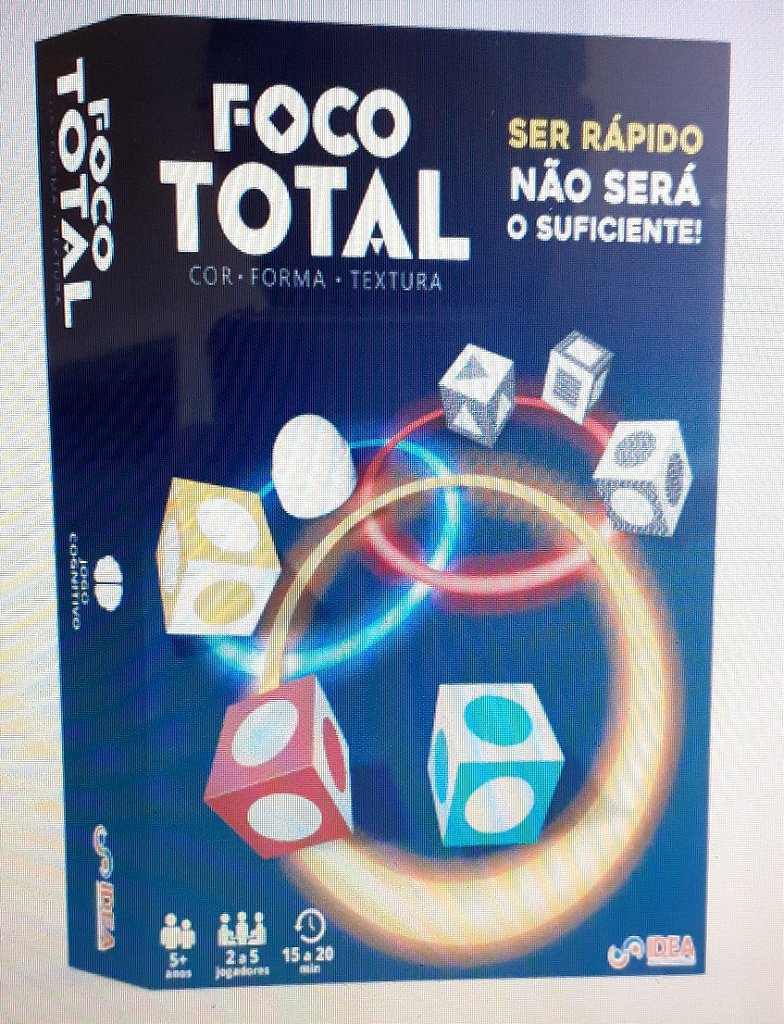Foco total é um jogo muito dinâmico e rápido que trabalha e exige agilidade mental, memória e atenção em 5 níveis de dificuldade. Cada nível terá uma variável, entre cor, textura e forma e cada vez mais estímulos concorrentes serão acrescentados para elevar o grau de dificuldade. É um jogo divertido e completo para trabalhar funções executivas.