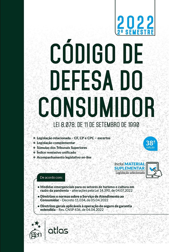 Consolidado por décadas de tradição, Código de Defesa do Consumidor – Lei 8.078, de 11 de Setembro de 1990 disponibiliza acompanhamento legislativo online, com informações sobre as normas de maior impacto nos principais ramos do Direito brasileiro, bem como aquelas que alterem os dispositivos legais contidos neste livro, publicadas ao longo do ano. Além disso, esta edição está de acordo com: