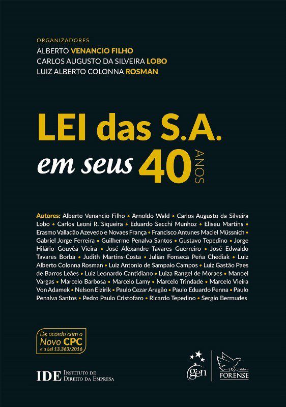 Em 15 de dezembro de 2016, a Lei das S.A. (Lei 6.404/1976) completou 40 anos de vigência. Este volume, reunindo contribuições de ilustres advogados e professores, homenageia os juristas que elaboraram o anteprojeto Alfredo Lamy Filho e José Luiz Bulhões Pedreira e comemora a longevidade desse magnífico diploma legal.Os autores enraizaram o anteprojeto no sistema jurídico já construído pelo Decreto-lei 2.627/1940 da lavra de Trajano de Miranda Valverde , mas não se intimidaram ao lançar mão de institutos pouco ou nada conhecidos pela comunidade jurídica brasileira. A pretensão de viabilizar uma economia fundada na grande empresa aberta de capitais nacionais não podia dispensar as novas soluções que se introduziam em economias mais avançadas. Nesse sentido, comentou-se, com razão, que a Lei das Sociedades Anônimas exerceu uma função didática.