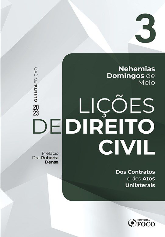 Sobre a obra Lições de Direito Civil - Volume 3 - 5 Ed - 2023Esta obra aborda todos os conceitos indispensáveis ao conhecimento básico do direito civil brasileiro. A obra não tem a pretensão de ser um tratado doutrinário, mas como o próprio nome da coleção diz, ser lições de direito civil. Cada volume apresentado estabelece premissas fundamentais para a melhor compreensão da matéria ao analisar acertadamente os institutos que tratam do conteúdo da disciplina.Destacam-se na coleção alguns traços distintivos com relação a outras obras similares disponíveis no mercado, como, por exemplo, a falta de citação de outros autores. Quer dizer, a obra é direta e objetiva e o autor não se preocupou em ficar colacionando notas de doutrina de outros autores para reforçar seus conceitos. Outro exemplo: nas citações de artigos de Lei, especialmente do Código Civil, o leitor encontrará em notas de rodapé o texto do artigo mencionado.