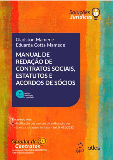 Redigir ou reformar contratos sociais, estatutos e acordos de sócios vai se tornar algo simples para quem deseja criar documentos consistentes e amoldados às particularidades de cada cliente.O Manual de Redação de Contratos Sociais, Estatutos e Acordos de Sócios traz mais de mil modelos de cláusulas, atendendo não só aos requisitos legais, mas cuidando das mais diversas situações. Dessa forma, você facilmente resolverá qualquer desafio, ajudado por notas explicativas que detalham todos os aspectos necessários.Escrito por Gladston Mamede e Eduarda Cotta Mamede, dois grandes especialistas em Direito Empresarial e Societário, este livro vai mudar sua rotina profissional para muito melhor.Trata-se de uma obra recomendada para advogados, contadores, administradores de empresa, consultores empresariais e todos os que trabalham com a constituição de empresas?