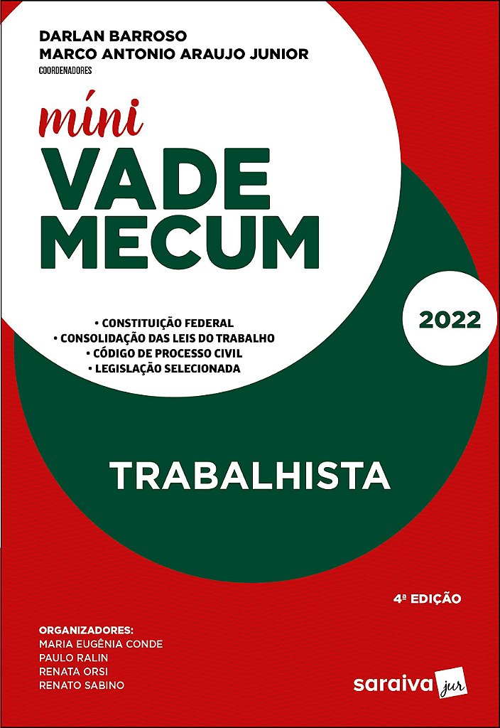 A obra Míni Vade Mecum Trabalhista, chega à 4. edição, com seus maiores diferenciais: - Em conformidade com os principais editais de concursos, inclusive do Exame da OAB- Material preparado com orientação acadêmica e pedagógica de professores com larga experiência em Exame da OAB- Legislação com remissões estratégicas, sem jurisprudência ou doutrina (de acordo com o permitido pelo edital da OAB)- Súmulas, OJs e Precedentes Normativos (não comentados nem comparados)- Índices alfabético-remissivos, sem estrutura de peças processuais - Projeto gráfico diferenciado, com cabeçalhos que indicam as normas e os artigos - Papel que permite grifos ou marcações. O presente Míni Vade também se destina ao uso profissional, já que, na organização, incluímos a legislação atualizada e relevante no dia a dia do operador do Direito, bem como a jurisprudência sumulada de nossos Tribunais.