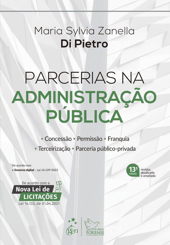 A obra trata de algumas das principais modalidades de parceria entre os setores público e privado, como a concessão de serviço público tradicional, a permissão de serviço público, as duas modalidades de parceria público-privada (concessão patrocinada e concessão administrativa), a franquia, a terceirização, o contrato de gestão, os termos de parceria, os convênios, os termos de colaboração e os termos de fomento, procurando mostrar quais as modalidades cabíveis em função do tipo de parceria com o particular.Nesta edição, é feita revisão geral em todos os capítulos, com menção a algumas alterações legislativas ocorridas desde a última edição. O principal objetivo desta edição foi fazer a atualização do livro para conformá-lo à nova Lei de Licitações e Contratos Administrativos – Lei nº 14.133, de 1º-4-2021.Foi mantida a referência à Lei nº 8.666, porque, nos termos do art.