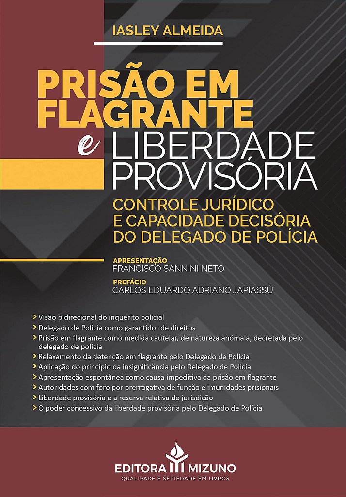 Discorre ainda sobre as imunidades prisionais das autoridades com prerrogativa de foro especial, apontando em quais hipóteses pode ser imposta a prisão em flagrante. Por fim, discute o poder concessivo da liberdade provisória pelo delegado de polícia, apontando que essa atribuição não é exclusiva do juiz, em face da máxima efetividade dos direitos fundamentais, podendo, inclusive, concedê-la quando patente a incidência de causa excludente da ilicitude.