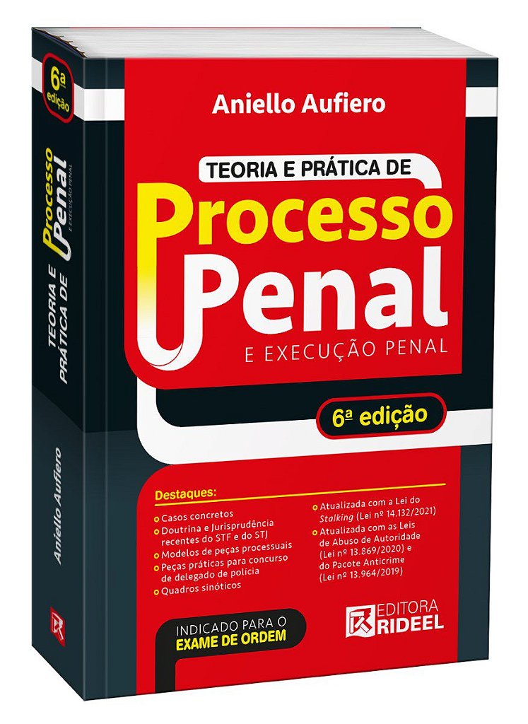 A obra de Aniello Miranda Aufiero, Teoria e Prática de Processo Penal, destinada à preparação para os Exames de Ordem, aborda, com precisão objetiva, os principais temas do Direito Processual Penal, através de uma percuciente leitura sistematizada do Código de Processo Penal. Amplia- se a relevância do livro, exatamente porque os Exames de Ordem têm se revelado como um dos métodos de avaliação para concursos, altamente comprometido com a qualidade das provas, semelhantemente às provas dos Concursos para as diferentes carreiras jurídicas.